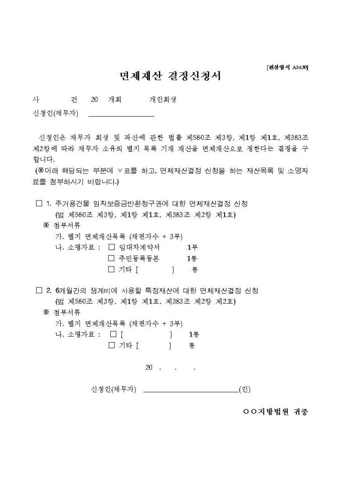 면제재산 결정신청서