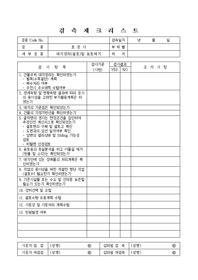 9,000원/월부대토목공사,대지정리(절토)및표토제거 체크리스트 입니다.
