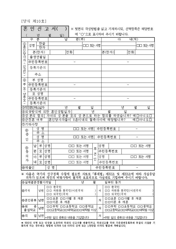 제10호, 혼인신고서