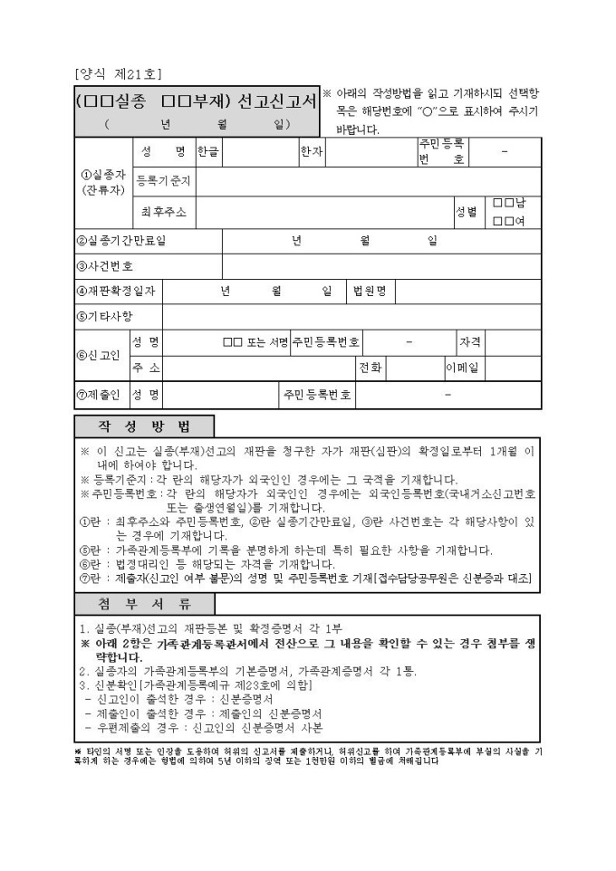 제21호, 실종.부재선고신고서