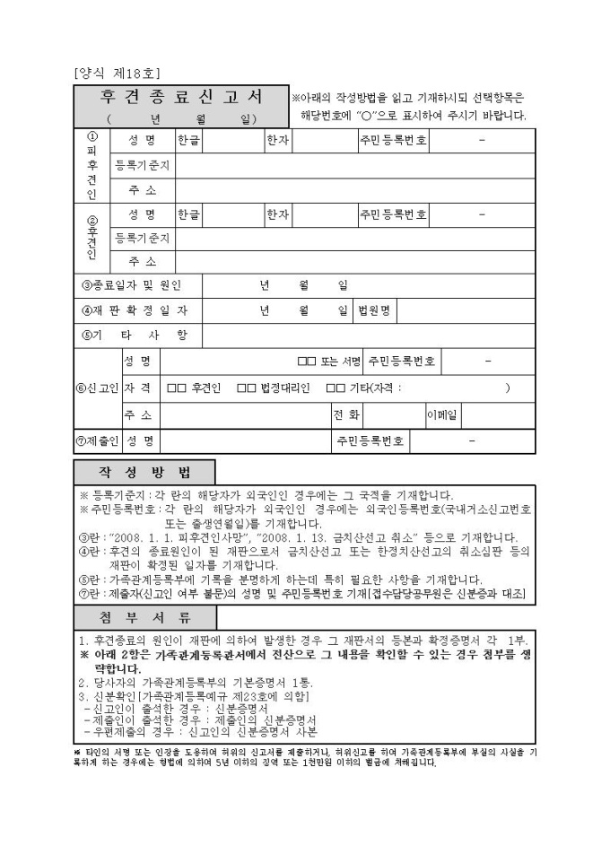 제18호, 후견종료신고서