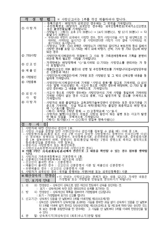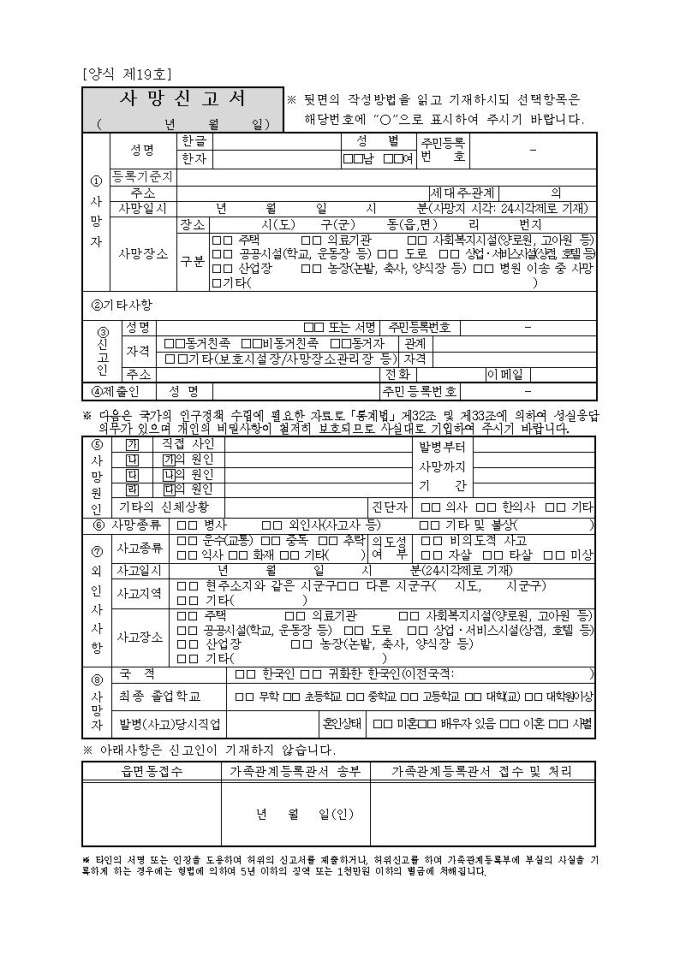 제19호, 사망신고서