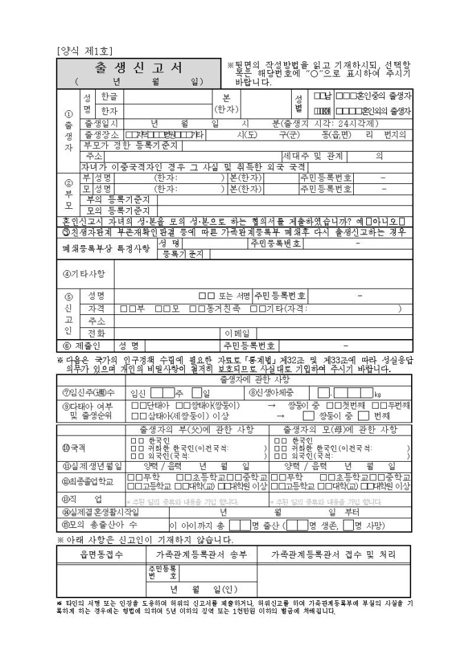 제1호, 출생신고서
