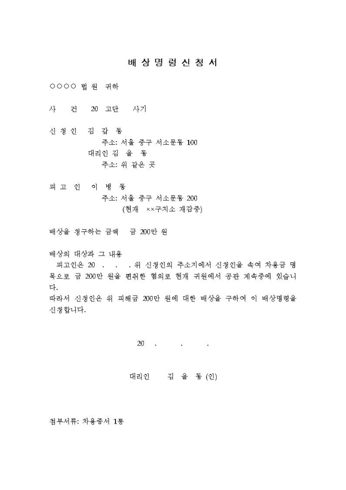 배상명령신청서