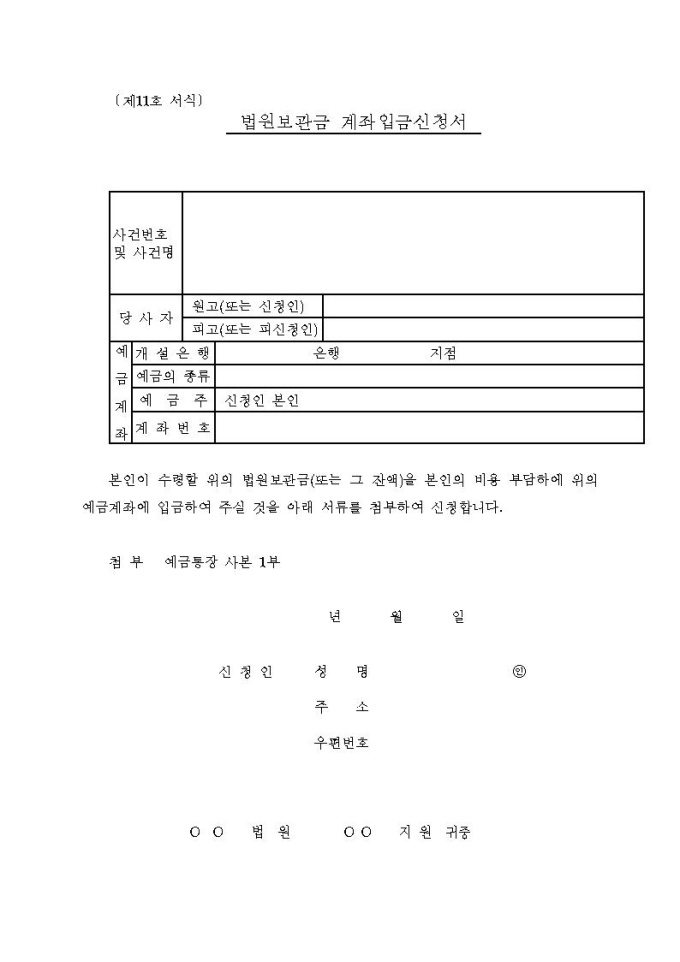 법원보관금 계좌입금신청서