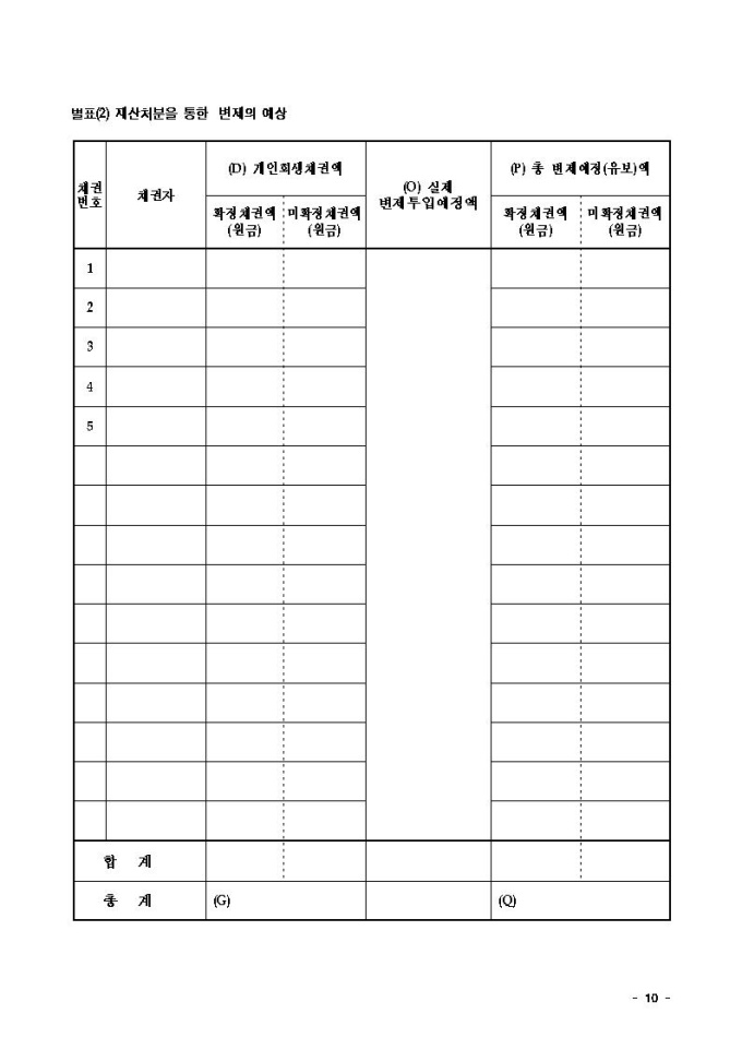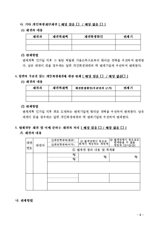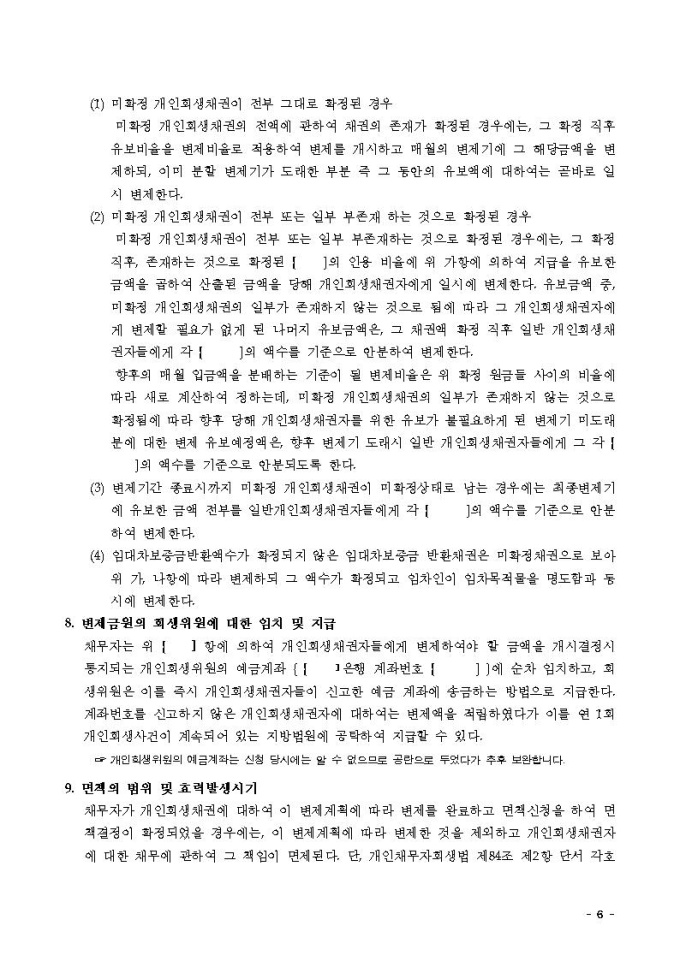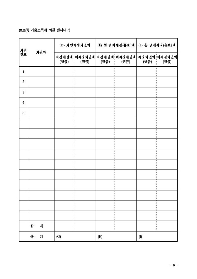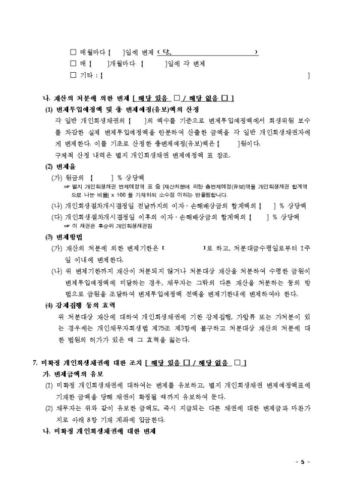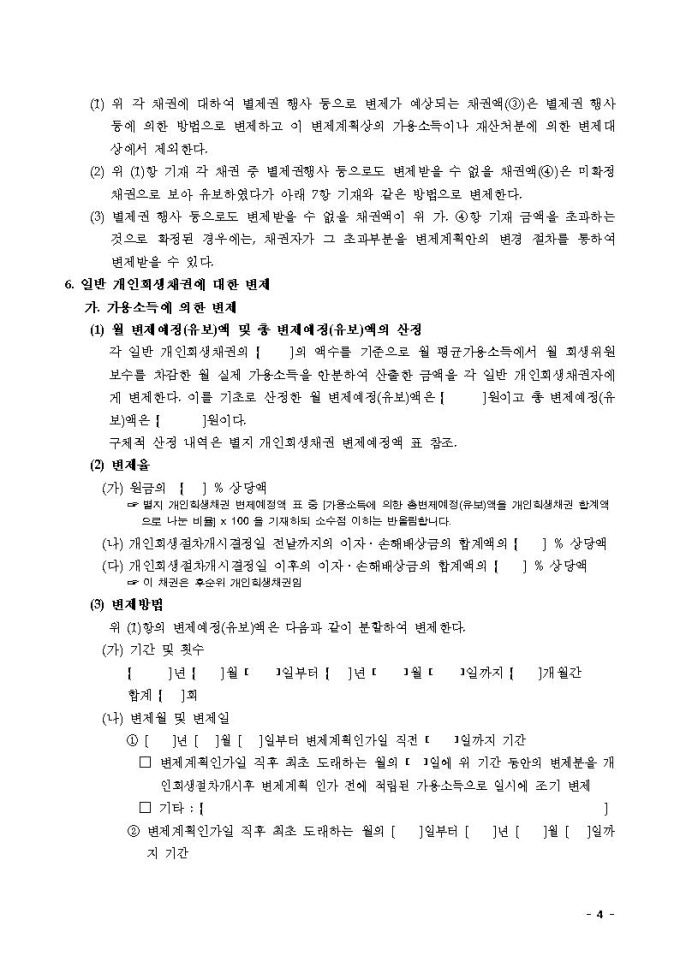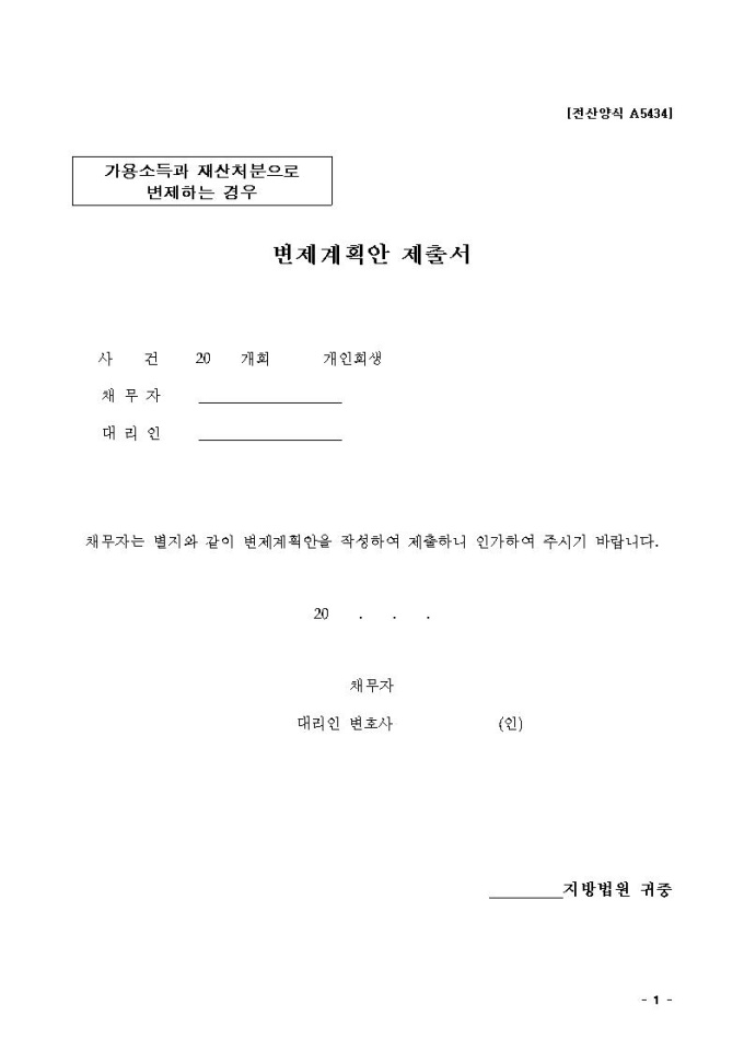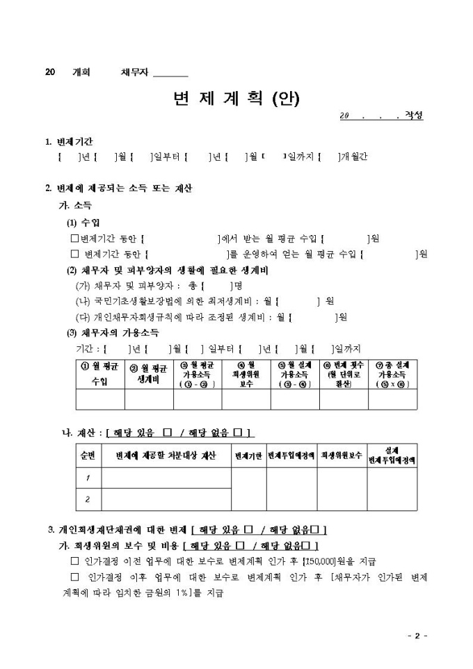 변제계획안2(가용소득과 재산처분으로 변제하는 경우)