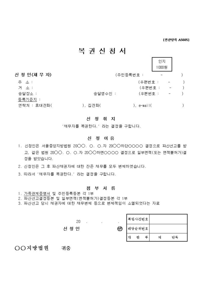 복권신청서 양식