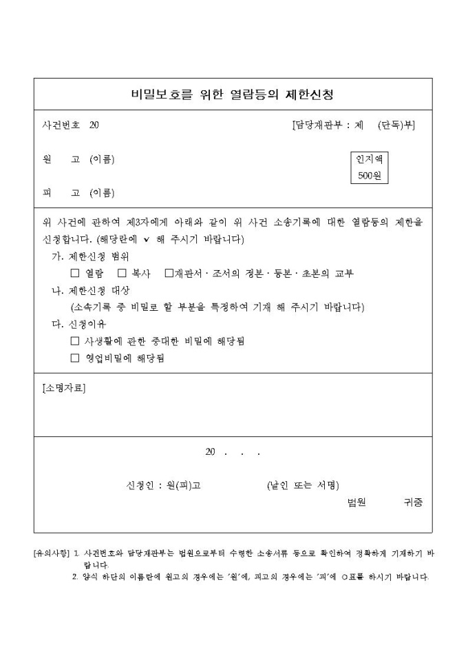 비밀보호를위한열람등의제한신청서
