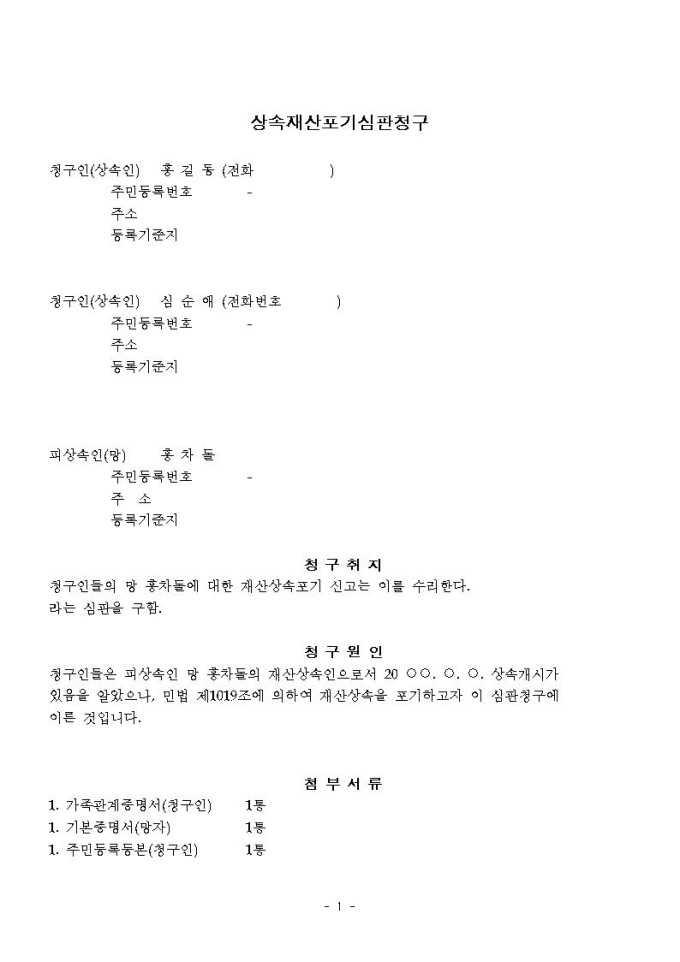 상속재산포기심판청구