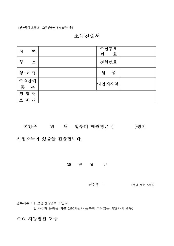 소득진술서(영업소득자용)