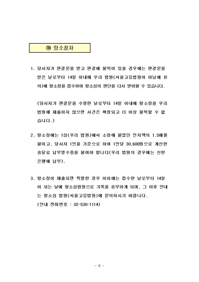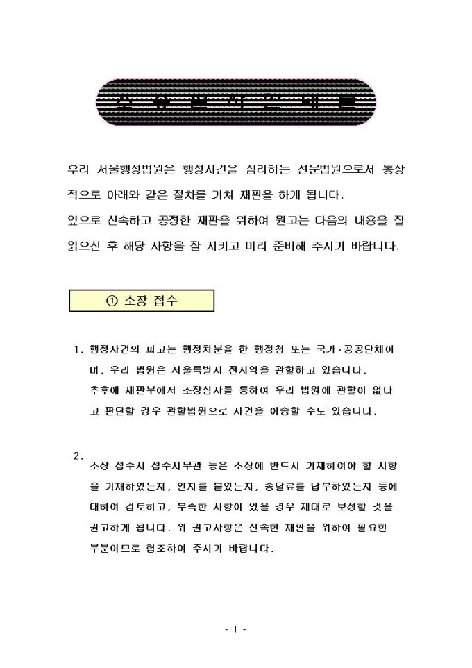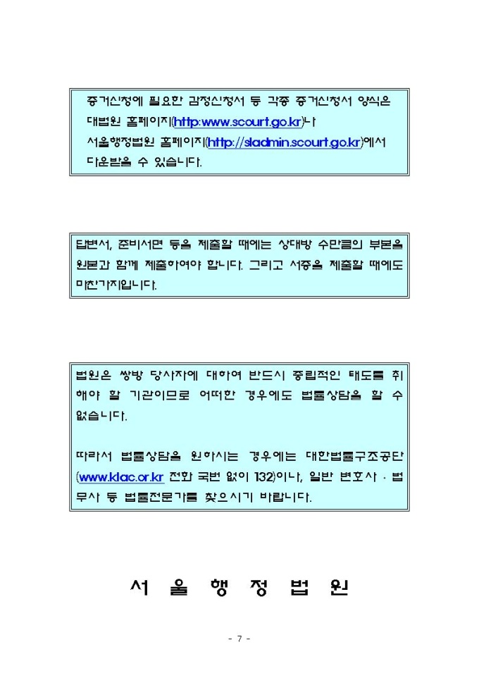 소송절차 안내문(서울행정법원용)