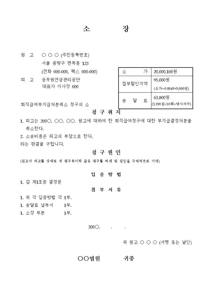 소장(퇴직급여부지급처분취소)