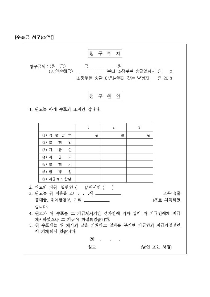 수표금 청구(소액)