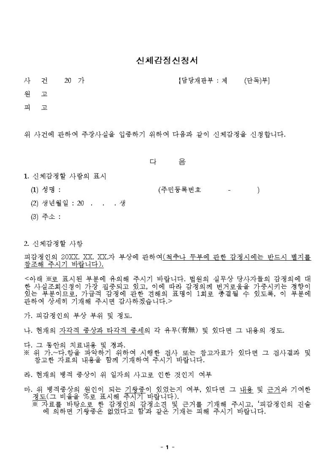 신체감정신청서
