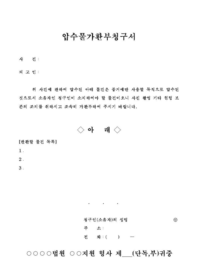 압수물가환부청구서