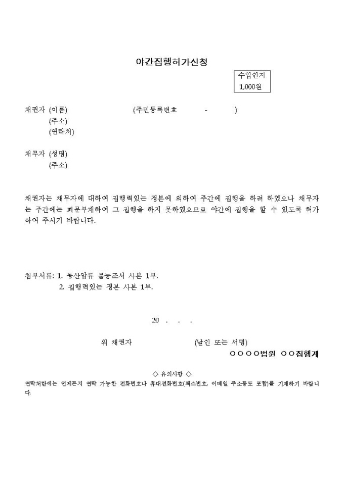 야간집행허가신청서