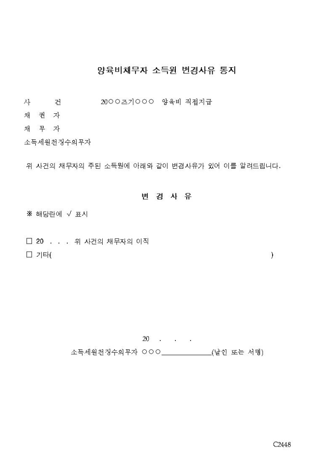 양육비채무자소득원변경사유통지서
