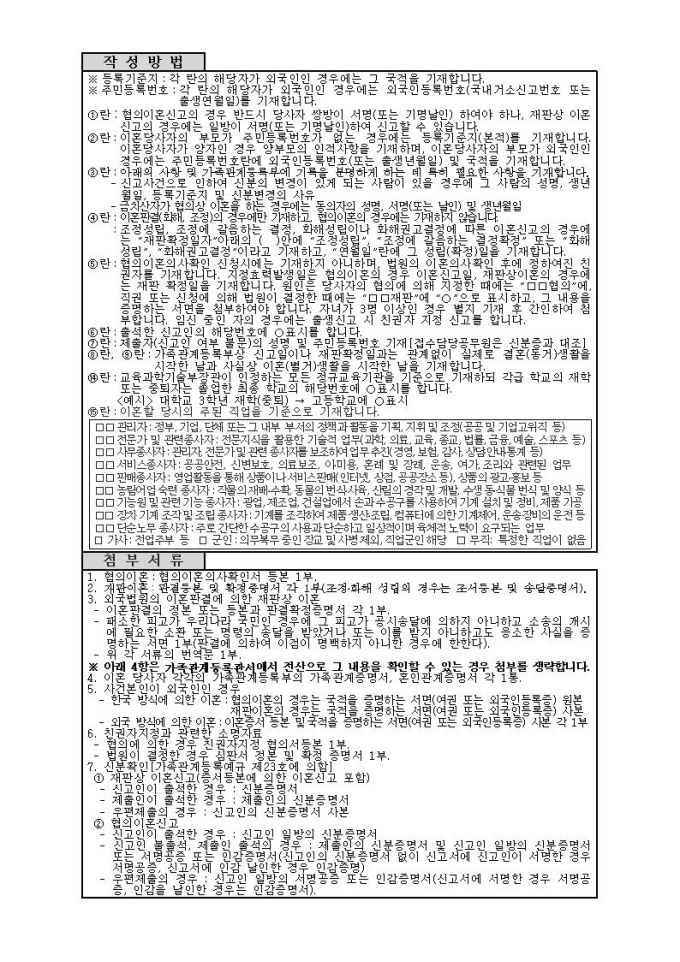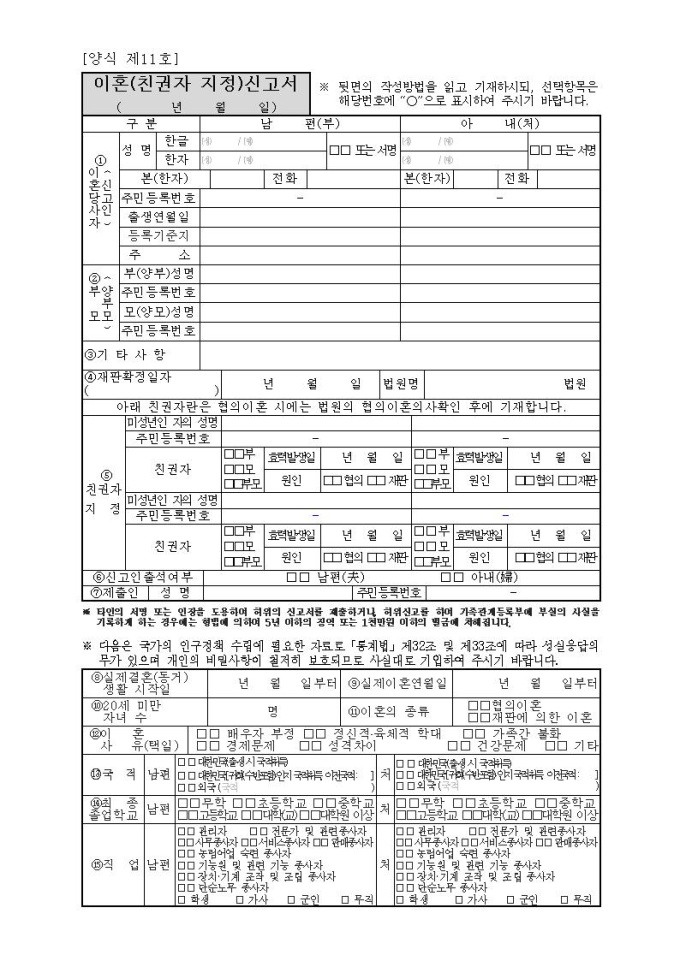 이혼(친권자지정)신고서(시구읍면사무소 제출용)