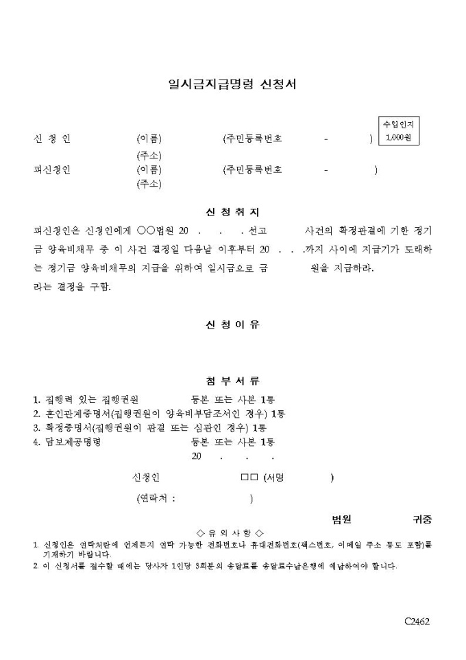 일시금지급명령신청서
