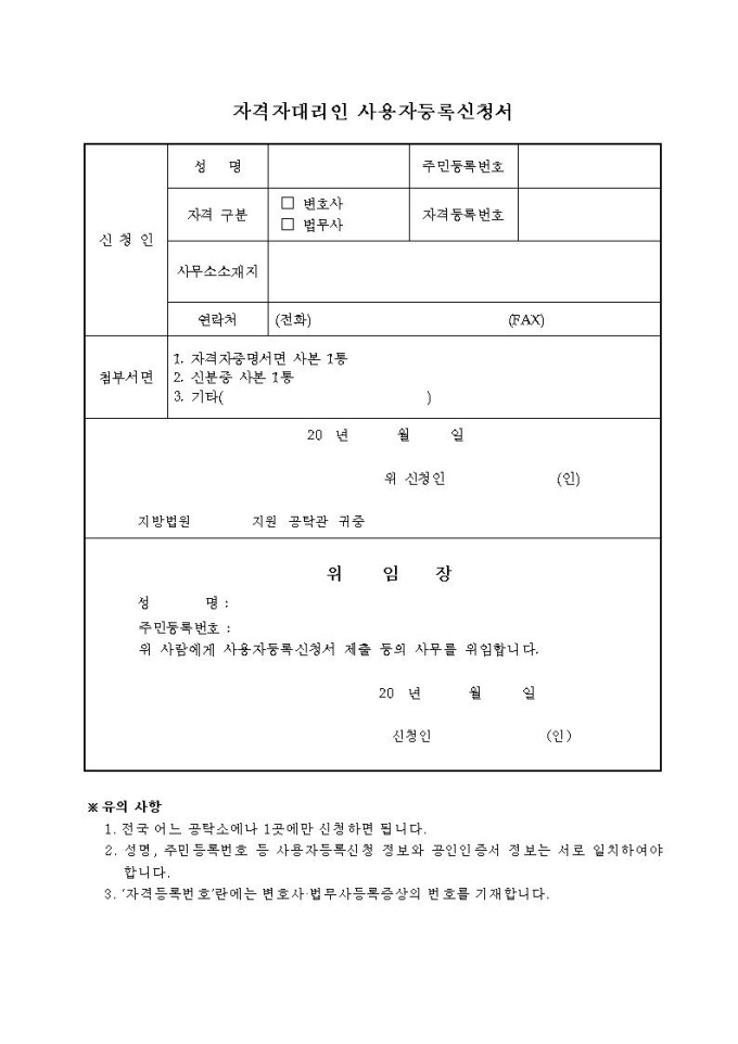 자격자대리인 사용자등록신청서