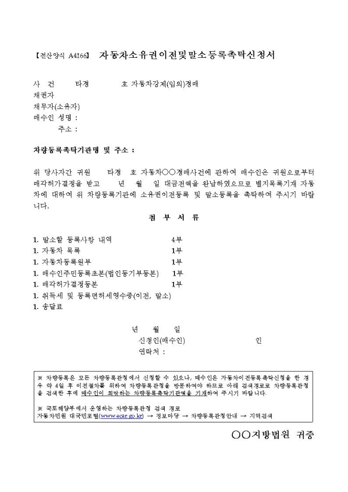 자동차소유권이전및말소등록촉탁신청서