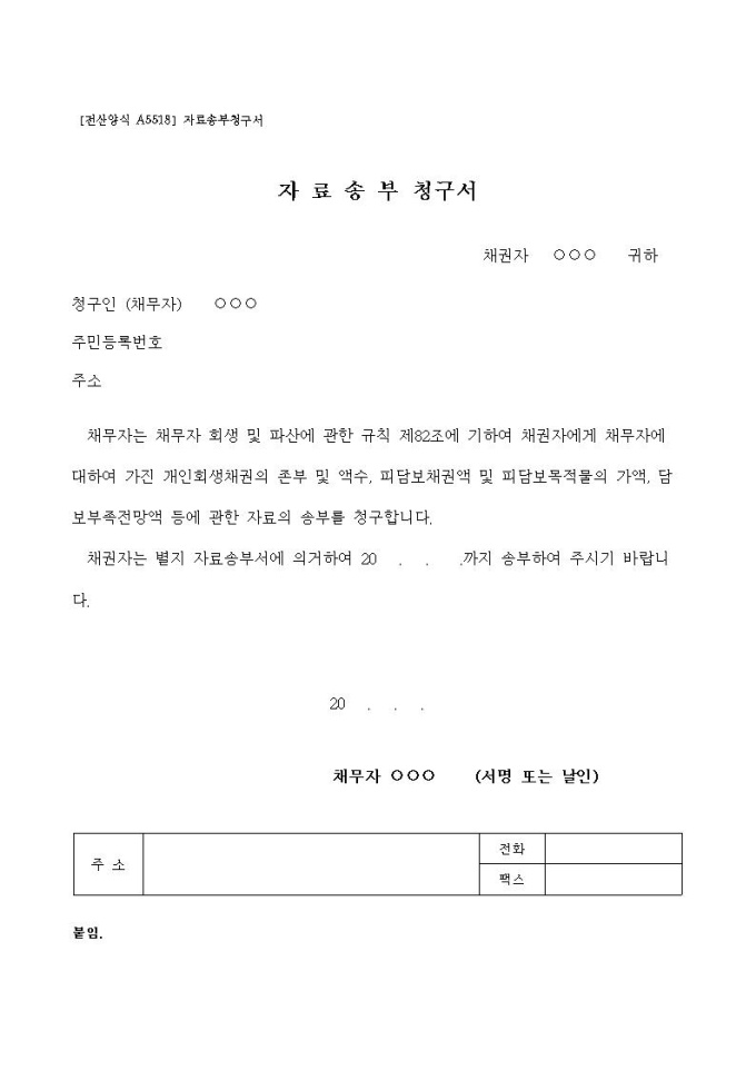 자료송부청구서