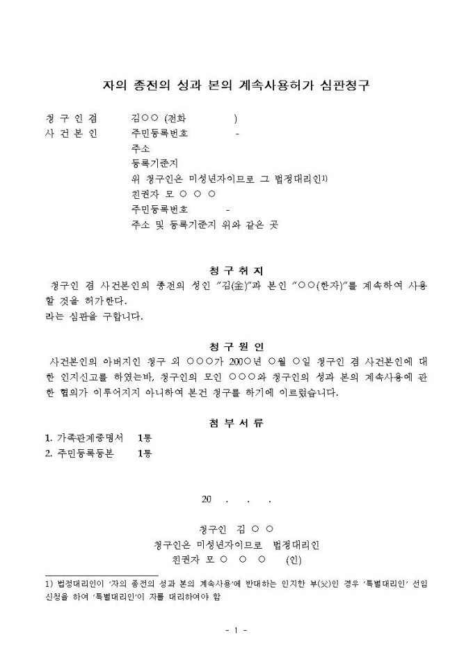 자의 종전의 성과 본의 계속사용허가 청구