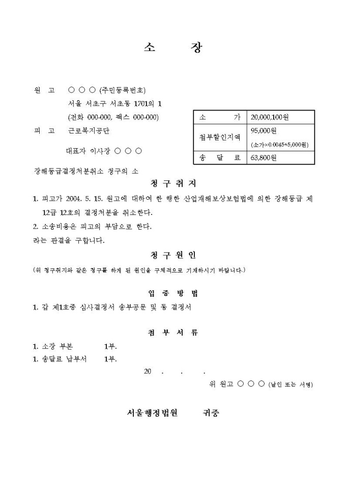 장해등급결정처분취소
