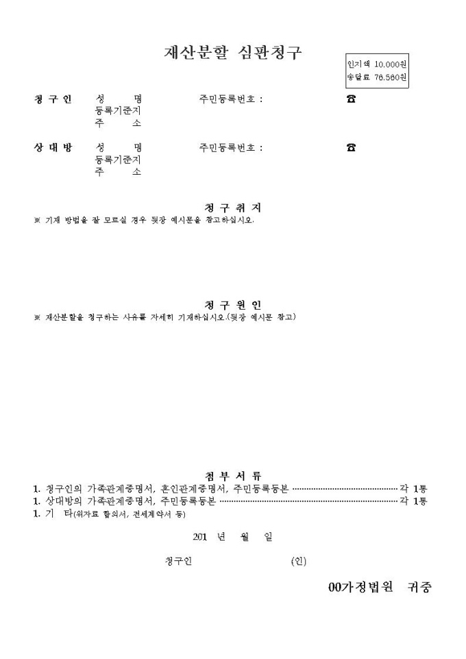 재산분할 심판청구서