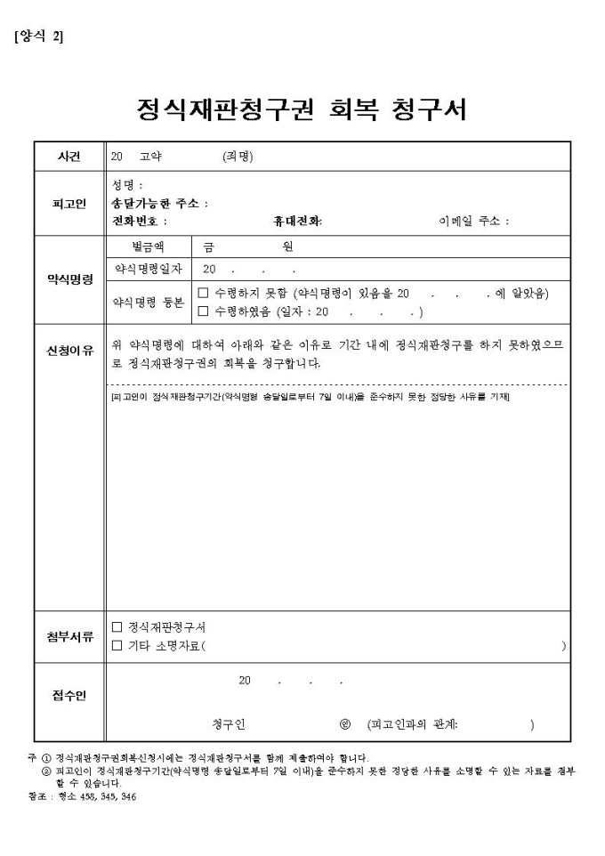 정식재판청구권회복청구서