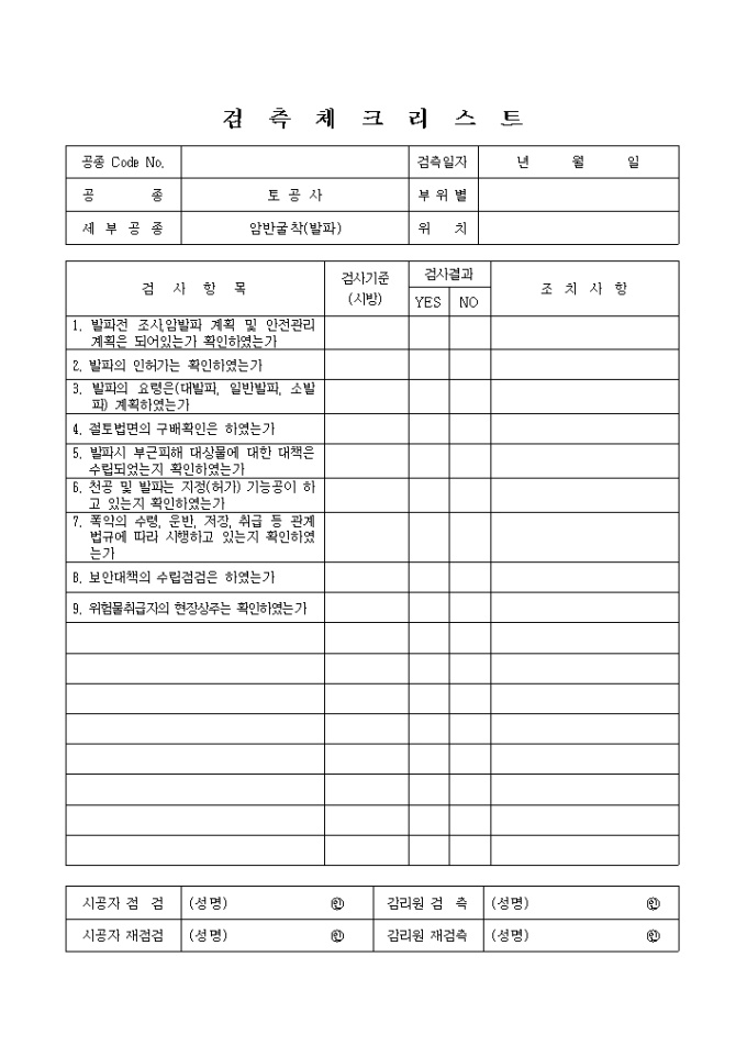 9,000원/월부대토목공사,암반굴착(발파) 체크리스트 입니다.