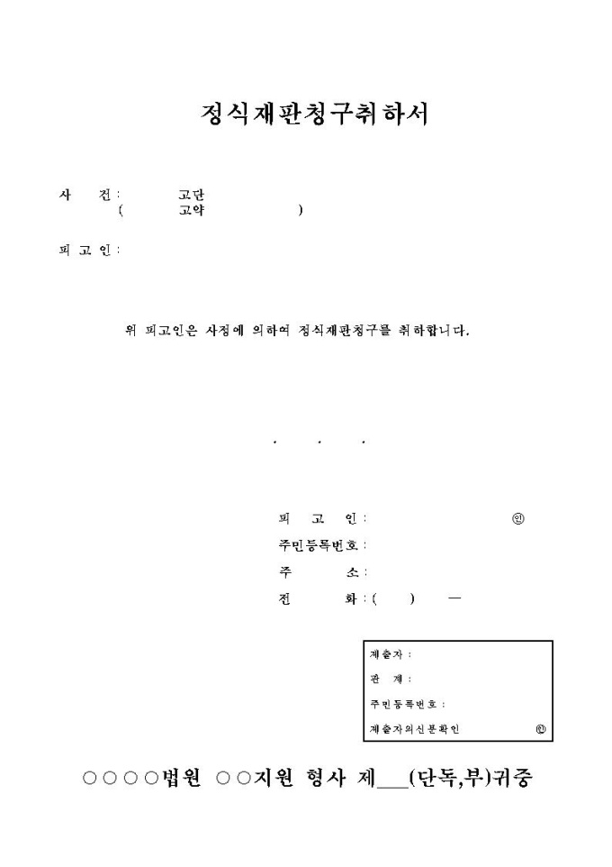 정식재판청구취하서