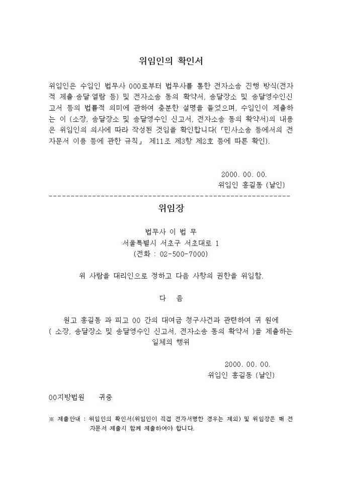 제출위임인 확인서 및 제출위임장(전자소송)