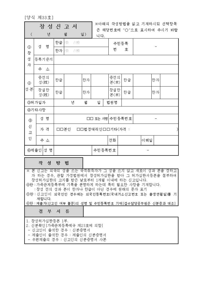 창성신고서(시구읍면사무소 제출용)