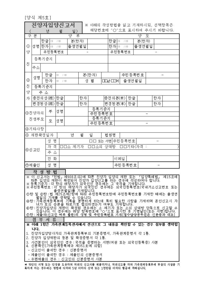 친양자입양신고서(시구읍면사무소 제출용)