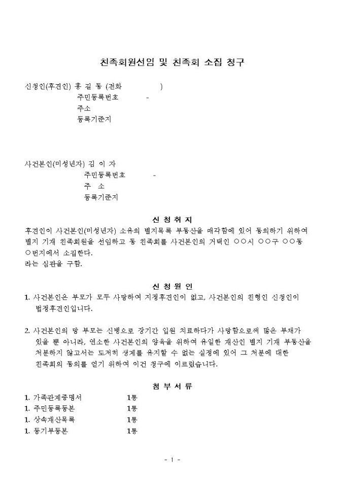 친족회원선임 및 친족회 소집 청구