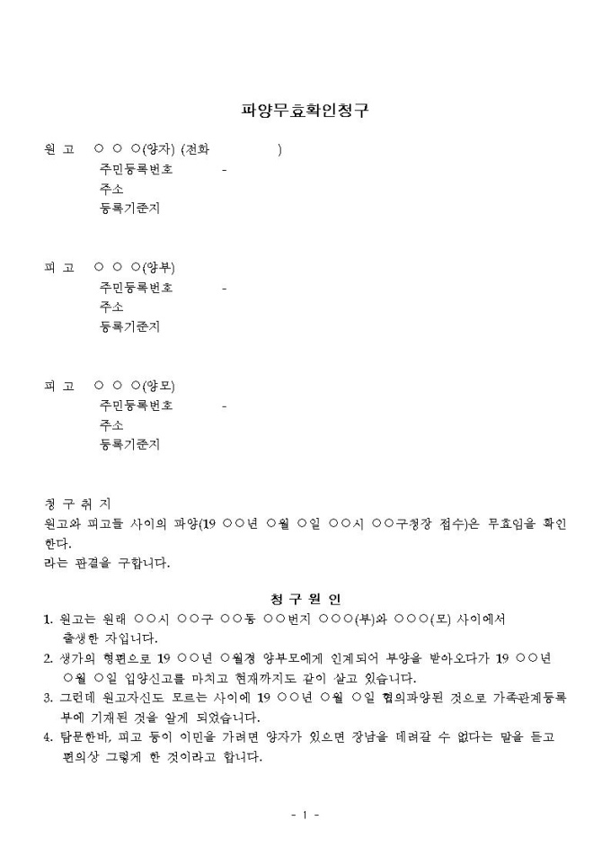 파양무효확인청구