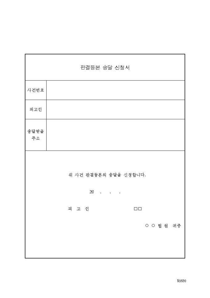 판결등본 송달 신청서