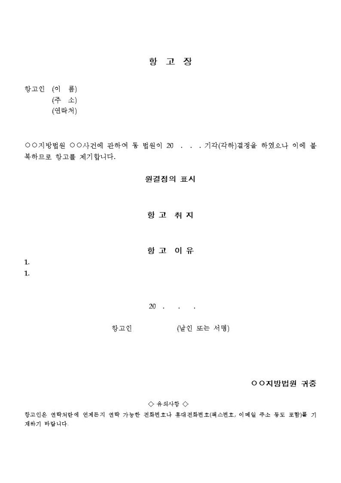 항고장