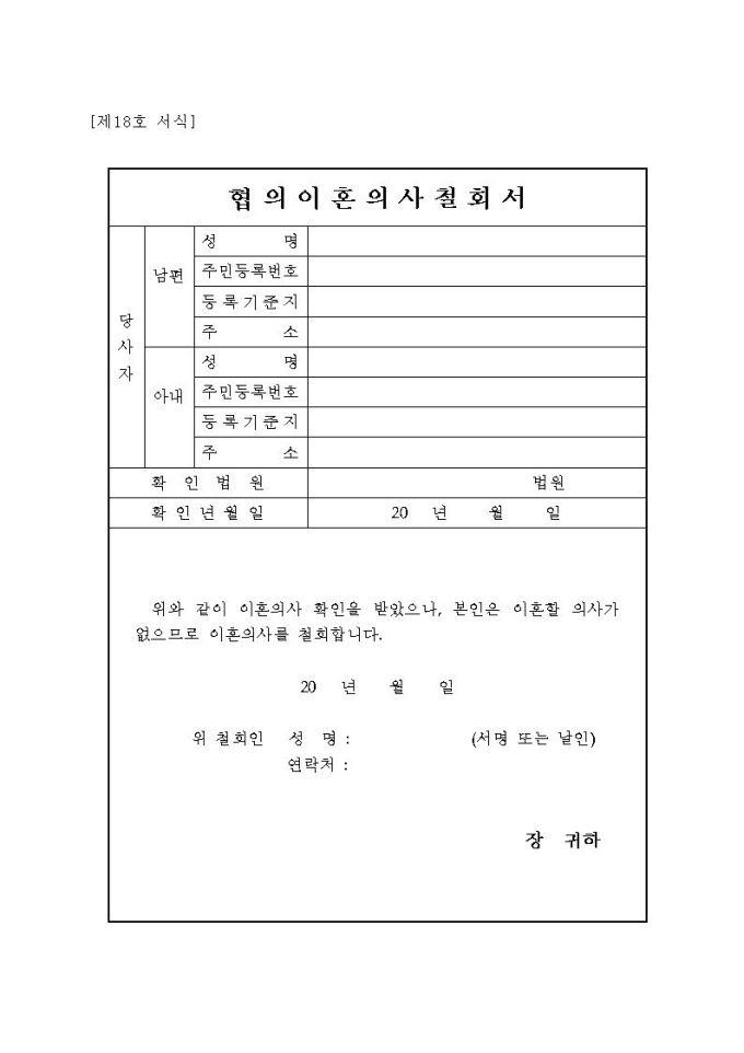 협의이혼의사 철회서(시구읍면사무소 제출용)