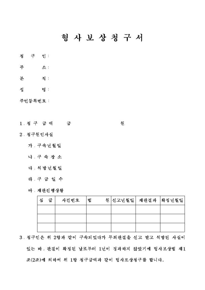형사보상청구서