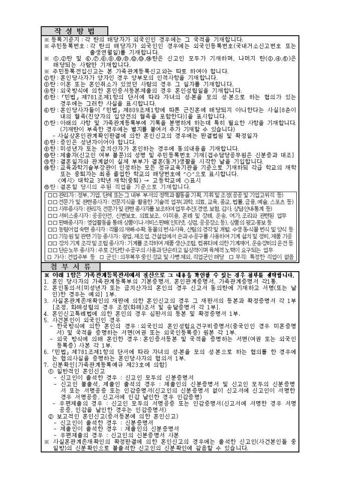 혼인신고서(시구읍면사무소 제출용)