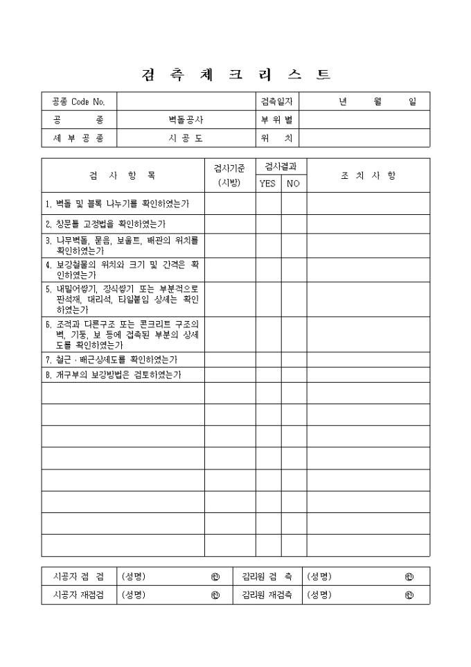 9,000원/월시멘트벽돌공사,내화벽돌공사,시공도③ 체크리스트 입니다.