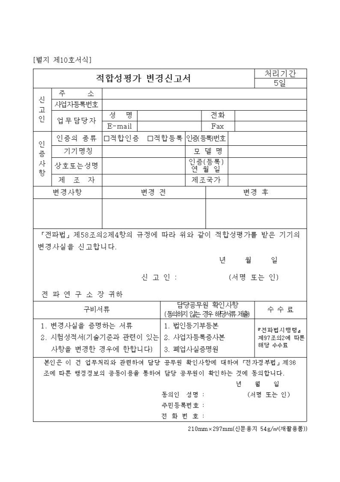 적합성평가 변경신고서