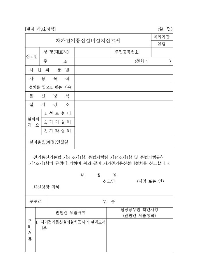 자가전기통신설비설치신고서
