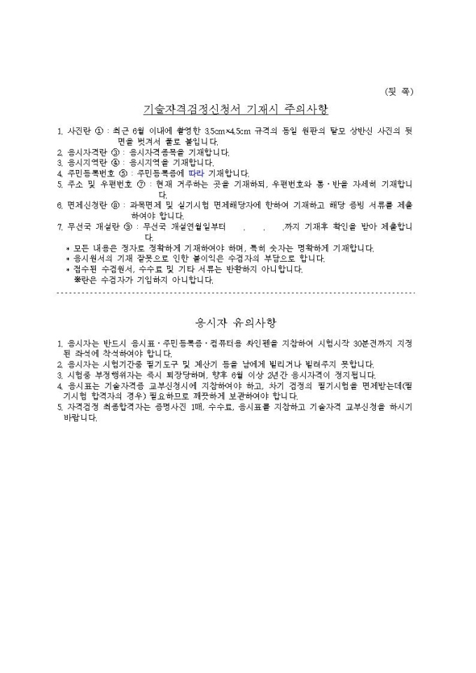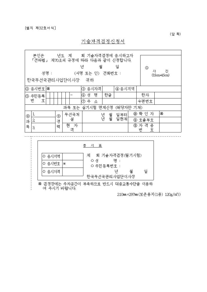 기술자격검정신청서