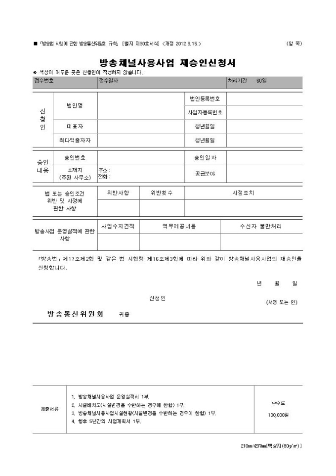 방송채널사용사업 재승인신청서