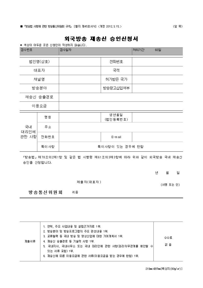 외국방송 재송신 승인신청서
