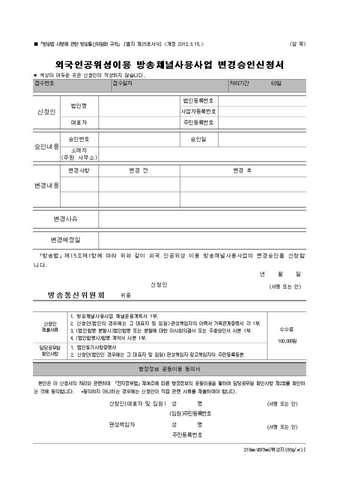 외국인공위성이용 방송채널사용사업 변경승인신청서
