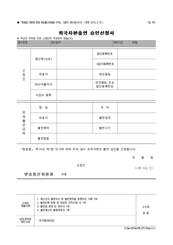외국자본출연 승인신청서